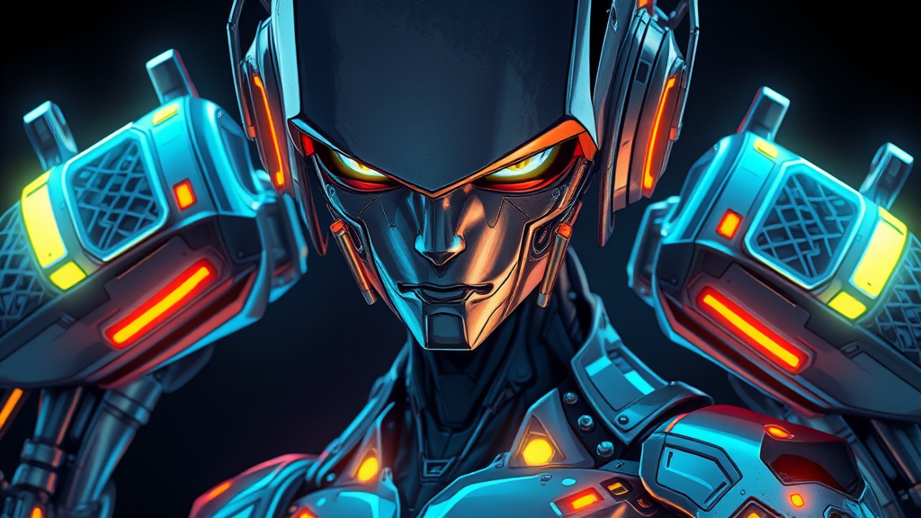 Glowing, industrial, cybernetic, mechanized robot design meets augmented human form, blending metallic surfaces with bio-luminescent skin-like detail, featuring intricate, almost abstract, metal lattice and wireframe elements surrounding the shoulders and limbs, a seamless blend of smooth, curved planes and sharp, jagged angles, creating an air of tension and fluid motion. A highly detailed, digital 3D portrait of the cyber-techno-human hybrid, emphasizing bold, asymmetrical lines and unnatural proportions, offset by hints of organic detail in the eyes, mouth, and lines in the face, giving way to a unique, individualized identity. The real-time rendered, digital painting comes alive with volumetric lighting and ambient illumination, creating a deep sense of depth within the metallic, cartoonish form, with an UHD, HDR display capable of capturing the subtlest, most intricate detail. Anime-influenced character design is present in the stylized lines and exaggerated expressions, but the asymmetry and bold, abstract shapes bring a touch of gritty, postmodern flair, as if the cyber-techno form is in a constant state of flux and self-repair. Illustrative elements such as glowing circuitry and glowing neon piping merge seamlessly with rough, industrial textures, crafting a visually striking cyber-augmented reality that is both menacing and mesmerizing, and bad art quality is deliberately employed to convey the disheveled, glitchy state of a cyber-gear who has undergone numerous system overhaul, resulting in an unrefined yet captivating aesthetic. Signature details such as worn circuitry, cybernetic replacements, or hastily applied tattoos are scattered about, telling the story of repeated hacking incidents, skirmishes with rogue AI, or careless encounters with high-powered EMP blasts. A digital watermark subtly incorporated into the design spells out a constant, never-ending log of updates, patches, and backdoors that leave their mark on the machine, betraying the notion of a clean, well-maintained design and hinting at a background of dark, cyberpunky adventures. At the mouth of this digital being, a stylized emblem, almost a port of entry to a separate, unseen layer, emits a soft, eerie glow, whispering hints of encrypted information and invisible scripts written into its being, while out-of-frame fragments of discarded mechanical limbs, wires, and wires tangled in gruesome compositions speak to an ongoing process of self-healing and upgrades, underscoring the cyber-gear’s dynamic nature. Tossed into a swirl of blackness, this mishmash of mechanical components, bio-luminescent glow, and abstract metallic latticework reassembled to create a dazzling puzzle of contrast, bad art quality standing as an anti-aesthetic against the slick, detailed surfaces, producing a figure that both repels and draws in, challenging one’s perceptions of beauty, humanity, and what it means to be alive in a world where the boundaries between flesh and steel have become blurred.