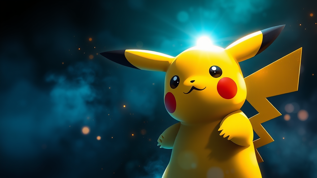 Pikachu in a vibrant chiaroscuro style, high-definition background, inspired by Suehiro Maruo and Magali Villeneuve, featuring energy-filled illustrations and cartoon realism. The image showcases overexposure effects and luminous shadowing, depicting a dramatic interplay of light and dark.