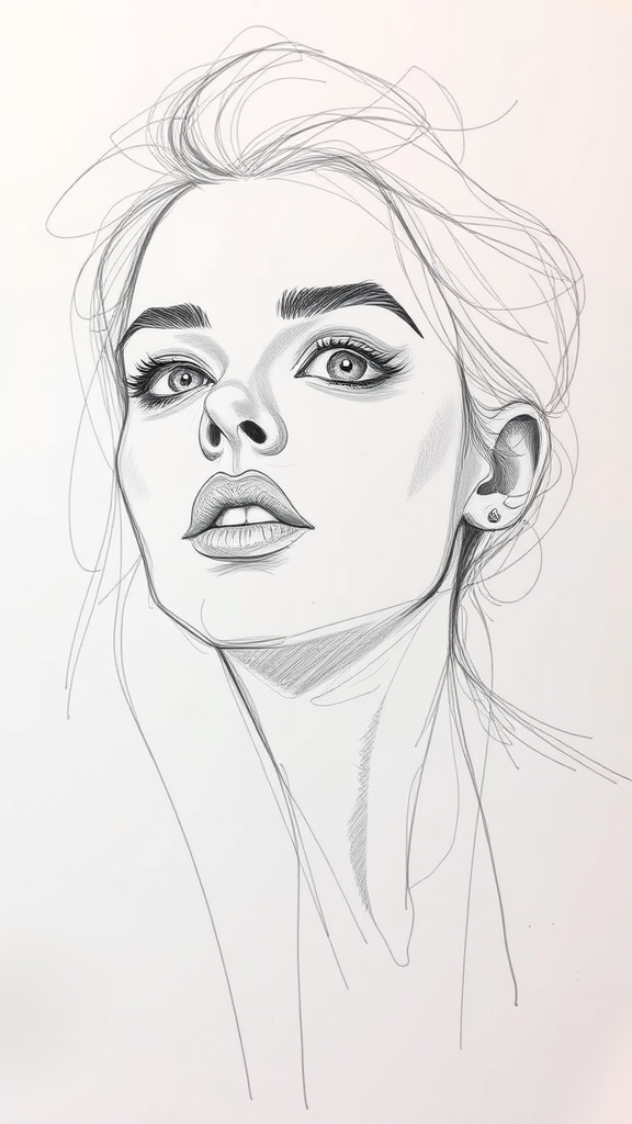 Cara Delevingne, expressive pencil sketch on paper, featuring fluid lines and subtle shading, capturing her unique facial features and playful expression with an artistically abstract flair.