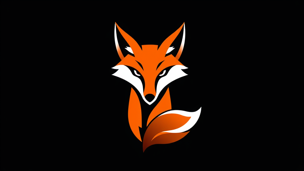 Fox logo design, 4k, high detail, sleek and modern, vibrant orange and white color palette, sharp angular lines, expressive eyes, dynamic pose capturing movement, subtle nature elements integrated, minimalist yet impactful, suitable for digital and print media.