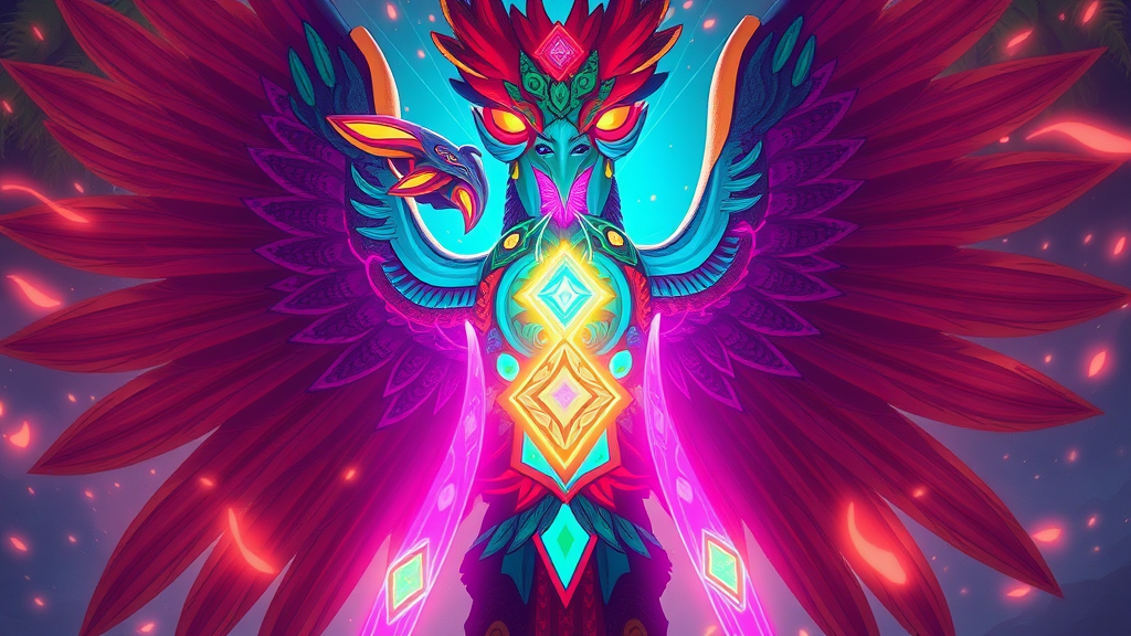 Male man boy totem animal aztek tribal style fanart ornate fantasy heartstone ankama gta5 cover style official behance hd artstation by Jesper Ejsing, RHADS, Makoto Shinkai, Lois van Baarle, Ilya Kuvshinov, RossDraws totem color pastel vibrant radiating a glowing aura intricate, elegant, sharp focus, illustration, digital painting, concept art, matte, art by WLOP, Artgerm, Greg Rutkowski, Alphonse Mucha, masterpiece female woman girl mythic creature totem infused with celestial energy in a dreamscape setting, embodying unity and reverence, detailed symbology interwoven with luminescent patterns and ethereal ambience.