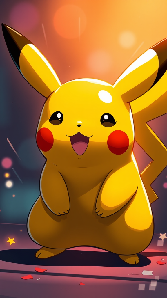 Pikachu wallpaper, HD background, chiaroscuro-inspired style, Suehiro Maruo's unique touch, vibrant energy, cartoon realism with an overexposed glow, Magali Villeneuve’s luminous shadow effects, dynamic play of light and shadow, heightened stylization, elongated portrait aspect ratio.