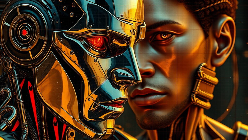 robot and men series beta one three three zero style of illusory wallpaper portraits colorful realism modular design intense close-ups dark gold and crimson ultra-high definition image mosaic-inspired realism aspect ratio seventy-one by one hundred eighteen adding subtle imaginative tweaks yet preserving essence