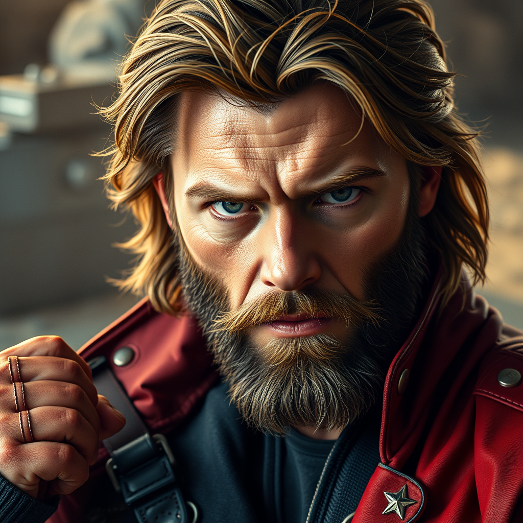 Star-Lord from the Guardians of the Galaxy movie, portrayed as a hyper-realistic Marvel character in the comic style, captured in an epic, dynamic portrait with rich, cinematic color grading. This stunning, photorealistic scene is brought to life in 8k resolution, as if shot on a Canon EOS-1D X Mark III. The photorealistic painting presents an intricate depiction of the character, filled with exceptional detail and clarity, with the camera settings emphasizing the soft morning light that bathes the subject. The artistic style blends the imaginative flair of James Jean with the classic elegance of Jean-Honoré Fragonard, offering small creative modifications while retaining the core essence of the captivating scene.