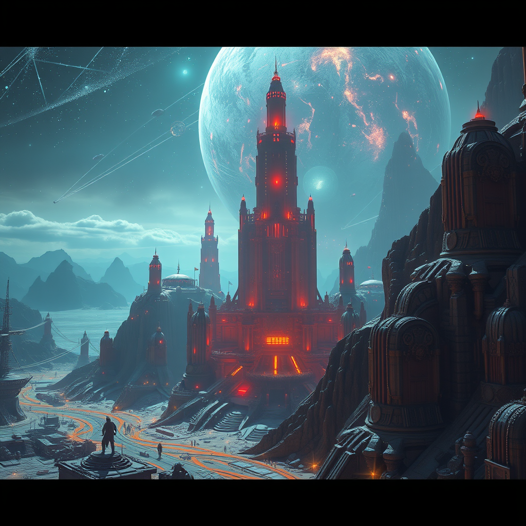 Sci-Fi, Hyper realistic, Detailed, Cinematic Lighting, Dramatic Scene, Sharp Focus, Depth of Field, IMAX, UHD, HDR, 8K, Breathtakingly Stunning Landscape, Intricate Technology, Impeccable Detail, Vivid Colors, Surreal Imagery, Unseen Universe, Mind-Bending Structures, Ethereal Atmosphere, Awe-Inspiring Perspective, Seamless Design, Mesmerizing Visuals, Dynamic Composition, Exceptional Clarity, Pure Imagination.