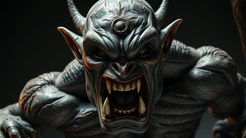 Body portrait of a fiercely enraged iron-skinned orc, exuding sheer intimidation and power. Captured from a low angle to enhance its menacing presence, the scene is rendered in a style reminiscent of horror art with a smooth octane finish. Every detail is finely etched, with dramatic lighting casting sharp shadows, enhancing the creature's terrifying visage. This masterpiece, trending on art platforms, is crafted in 4k resolution, drawing inspiration from the art styles of Stanley Lau, Jason Chan, and Mark Hill, with creative touches that evoke awe and fear in equal measure.