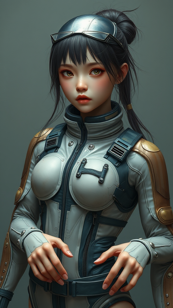 A hyper-realistic painting of a stunning girl wearing an EVA plugsuit, capturing intricate details, inspired by the anime style, in the vein of Greg Rutkowski, currently popular on ArtStation CGI. The artwork exhibits a 3D doll-like quality with an Octane render finish, featuring deliberately flawed anatomy, including blurred and fuzzy elements. The figure is adorned with extra arms and fingers, with hands that are imperfectly drawn. The overall composition suggests tiling, leading to a deformed and mutated appearance, while maintaining the core essence of the original concept.