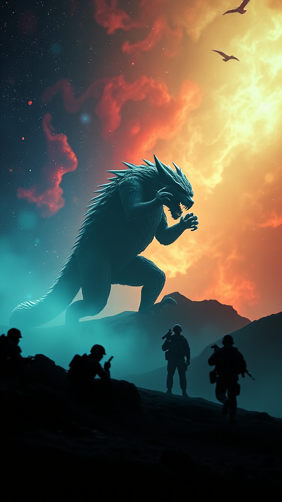 In a near-future world where soldiers are rigorously trained in hyper-realistic virtual reality simulated environments, the experience is both thrilling and terrifying—but deemed perfectly safe. That is, until a mysterious virus infiltrates the software, trapping them within these simulated worlds where safety protocols no longer apply. As digital threats turn dangerously real, the soldiers must navigate these war-torn landscapes while digital chaos unfolds. Amidst this, a cursed prince is transformed into a beast, shrouded in mystery. The soldiers' journey takes them through diverse settings—a mystifying nebula where thermal visions reveal hidden dangers, and a beautiful island lagoon reminiscent of a fairy tale fantasy. Their environment changes with each heartbeat, from the plain expanses resembling the Future Circular Collider, to abstract backgrounds filled with multiple colors. The mission is captured through the lens of a Nikon D3500 DSLR Camera, blending the cinematic style of Robert Capa and Alfred Stieglitz with modern technology. The scenes are photorealistic and hyper-realistic, presented in 8k Ultra-HD with natural, moody lighting and cinematic effects. This blend of sci-fi and social science fiction achieves exceptional detail, with an aesthetic echoing the surreal essence of 'pursuit' by Gesaffelstein. As the soldiers strike dynamic action poses amidst the chaos, the soft lighting and natural textures create an atmosphere filled with volumetric light, ray tracing, and epic detailed movie-style photography, where every encounter feels alive with ultra-detail and natural blur.