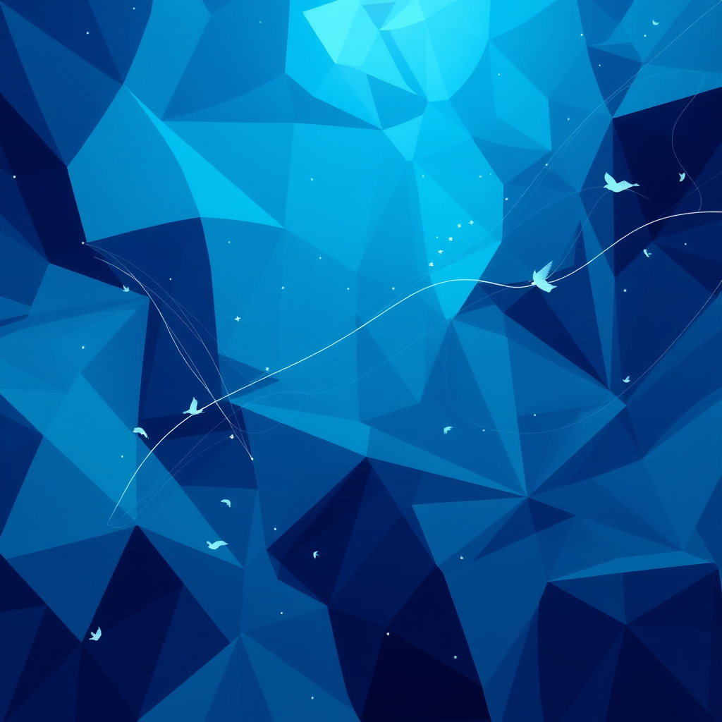A high-definition image featuring a harmonious blend of light blue and deep blue tones, showcasing a rich geometric pattern that flows seamlessly throughout. The composition includes dynamic flying elements, weaving through the abstract design, creating a sense of movement and depth. The overall aesthetic is a sophisticated tapestry of blue hues, offering a visually captivating experience without any text elements.