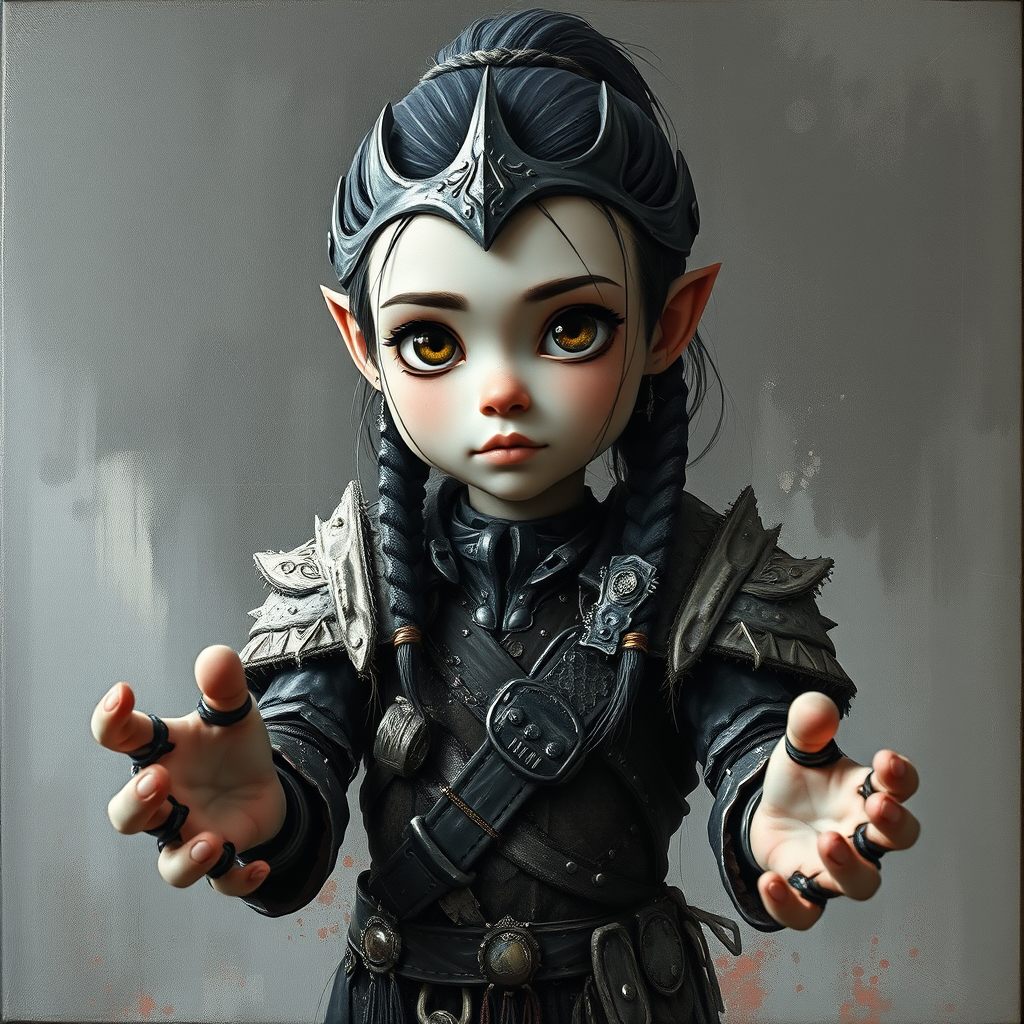 detailed concept art illustration, dark soft focus, oil painting on canvas of a young viking warrior girl in intricate attire, biomutant, dystopian setting, rich micro detail, octane render, 4K, abstract, slightly distorted, artistic with surreal elements, cartoon-like charm, whimsical toy-like features, framed in a 3D space, unique and imaginative, unusual proportions, elements of fantasy, dreamlike haze, monochrome tones with occasional vibrant colors, ethereal and otherworldly feel, creative blur, elongated form, subtly dynamic, artistic draft features, evocative expression, fantastical anatomy, whimsical limbs, otherworldly vibe, mysterious and intriguing, hands reaching with peculiar elegance, otherworldly charm, vivid hues, subtle grain texture, artistic anatomy, imaginative face, ethereal mutation, fluid composition, fragmented limbs, artistic focus, elongated proportions, dreamlike, imaginative fingers, mystical presence.