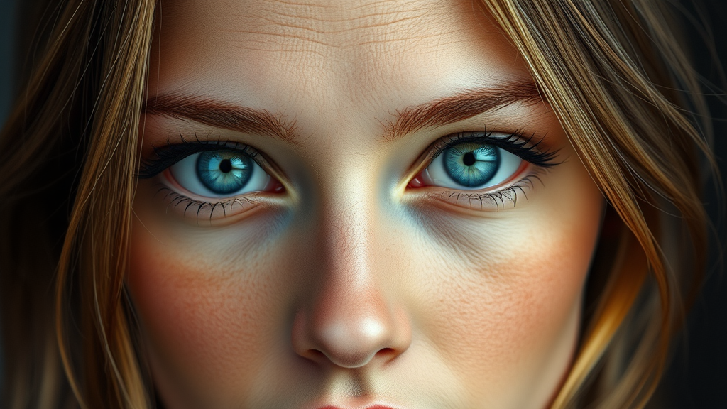 RAW incredibly detailed studio full-body portrait of a young woman with captivating ice-blue eyes and a wealth of intricate detail, shot in subtly dim lighting for an ultra-realistic, hyper-detailed effect. Captured with the precision of a Leica SL2 using an f/5.6 aperture and a 105mm lens, the style echoes the mastery of photographers Irving Penn and Annie Leibovitz, with expert retouching nuances by Pratik Naik.