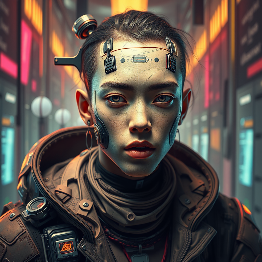 Hyper-realistic portrait inspired by Stefan Kostic, full-length, beautifully lit with ambient lighting, featuring intricate abstract and cyberpunk elements. The artwork merges the creativity of Beeple with the sharp detail of an octane render, resulting in high-detail, complex concept art. This digital painting is mastered in sharp focus, presenting a futuristic ambiance with a sophisticated blend of textures. The composition should resonate with a high-definition, 4k appeal, akin to the visionary works found on platforms like ArtStation.