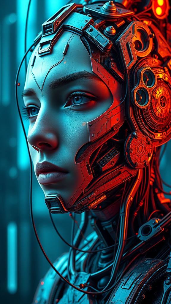 Hyper-realistic full-length portrait in the style of Stefan Kostic, intricately blending abstract art with cyberpunk elements. Featuring complex and detailed digital artwork inspired by Beeple, utilizing the high fidelity and sharp focus of an Octane render. The piece showcases ambient lighting that highlights the intricate details and layers of the subject, rendered in 4K for stunning clarity. The artwork captures a fusion of futuristic design and vivid imagination, naturally evolving the original concept into a visually arresting masterpiece, ideal for showcasing on Artstation.