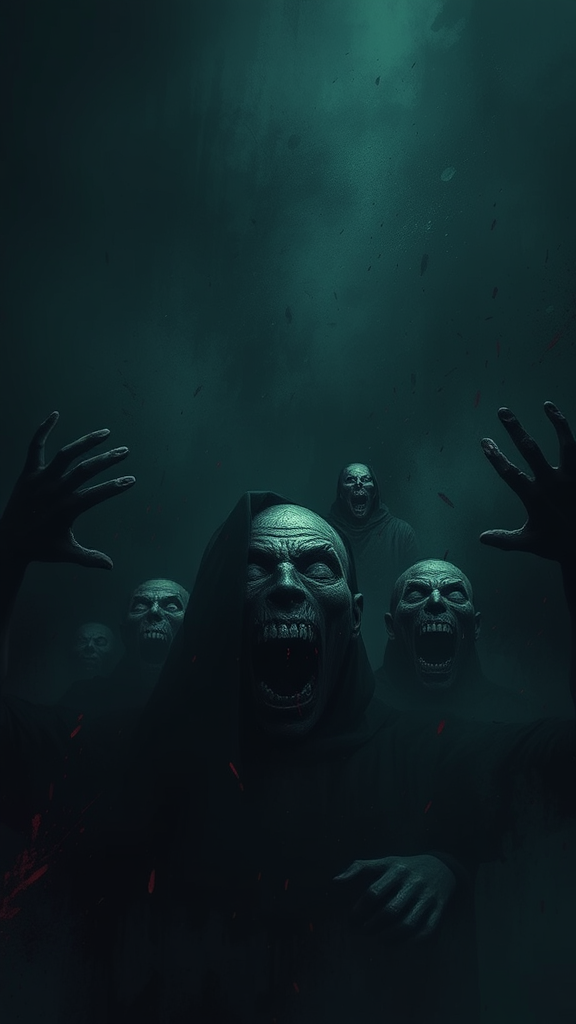 Dread, a powerful portrayal of warfare's terror, screams and bloodshed, somber backdrop, shadowy hues, horror, magnum opus, theatrical, digital artistry, painterly approach, expressionistic, subdued palette, melancholic, deeply emotional, leaving a lasting and haunting impact on the mind, exquisitely detailed, premium quality.