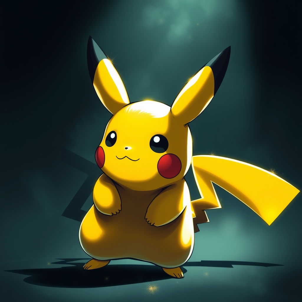 Pikachu wallpaper, HD background, depicting the beloved Pokemon in a chiaroscuro style reminiscent of Suehiro Maruo's captivating illustrations, infused with vibrant energy and cartoon realism. The composition includes an overexposure effect with luminous shadowing, drawing inspiration from Magali Villeneuve's mastery of light and dark.
