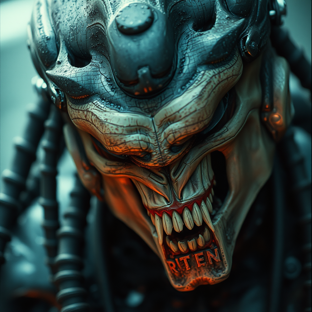 Cinematic film still ultra detailed realistic picture intricate details cyber predator in the year 2099 grotesque disfigured distorted grainy visual reminiscent of a chaotic sketch blending impressionist and abstract elements featuring a deformed mutated figure with blurred noisy textures and low contrast atmosphere undersaturated and overexposed capturing an unsettling presence akin to a glitchy animated nightmare fused with an overdone graphic representation exhibiting exaggerated and jagged features portraying an eerie yet fascinating vision of future predators.