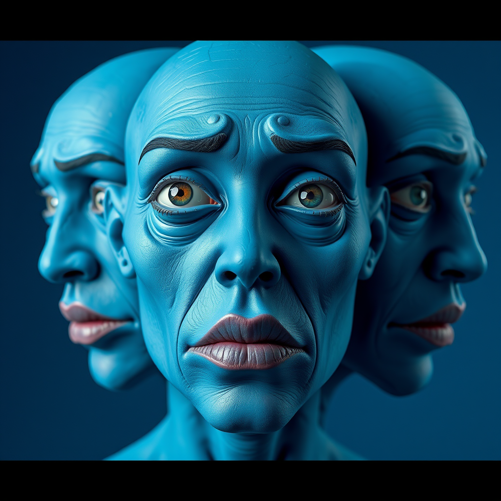 Perfect blue rendered with artistic brilliance, featuring cel animation and vivid colors, 16K, UHD, HDR. By new visionaries, showcasing unique and abstract elements like duplication, disfigurement, and mutation. Includes deformed, cloned faces with cross-eyed, unusual eyes, elongated necks, extra fingers, and mutated hands. Ensures a unique visual experience while avoiding common pitfalls like low resolution, blurriness, and unwanted artifacts such as watermarks, logos, or letters. Avoids cropped perspectives and maintains a unified, artistic whole.