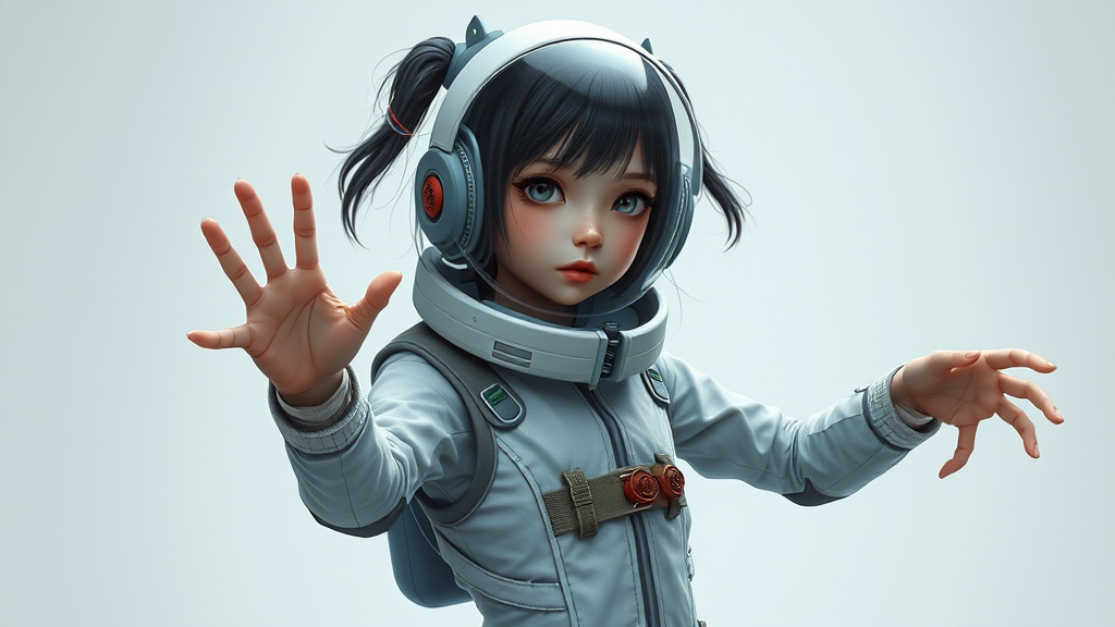 Hyper realistic painting of a striking girl in an EVA plugsuit, ultra detailed, anime-inspired, in the style of Greg Rutkowski, trending on ArtStation, with CGI and 3D aesthetics, resembling a doll, rendered using Octane. The piece intentionally features flawed elements such as disproportionate anatomy; slightly blurry and fuzzy textures; additional limbs like extra arms and fingers; awkwardly drawn hands; abstract and disfigured forms; with patterns that include tiling and hints of deformed, mutated features, creating a surreal and unconventional visual experience.
