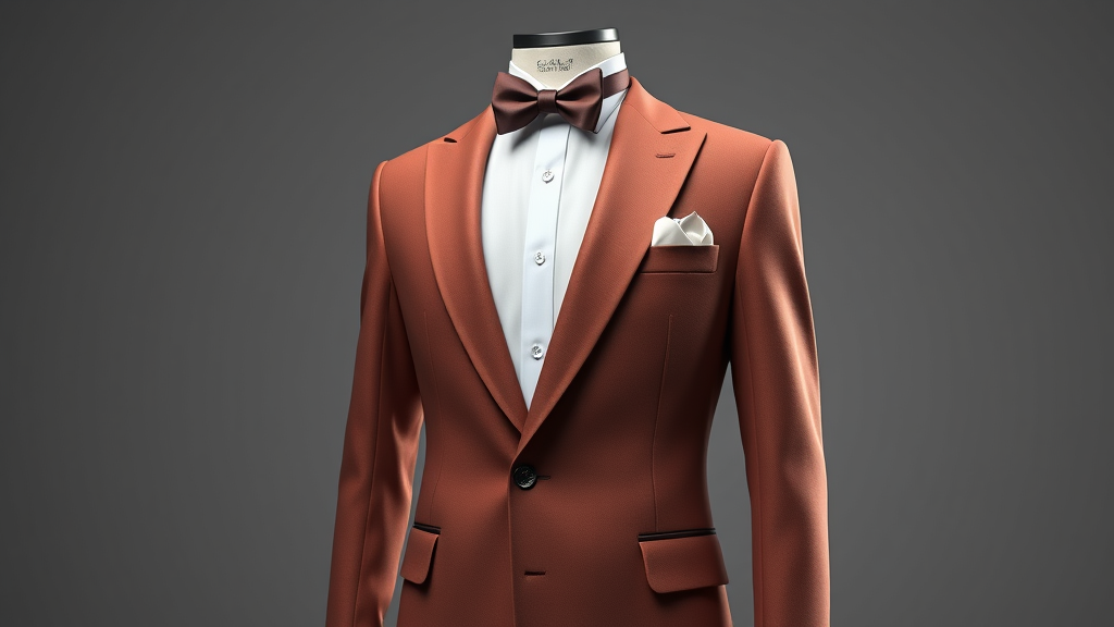 Front view of a tailored blazer, highlighting refined fashion design, featuring a stylish bowtie and elegant pocket square by Calvin Klein, captured from a dynamic side angle, showcasing an exquisite color scheme, with a soft backlight against a clean, muted gray background, rendered in Unreal Engine and V-ray, with a focus on timeless style and sophistication, absent of mannequins.