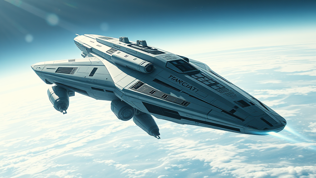 A stunning spacecraft majestically glides into view, reminiscent of Star Wars, captured in the classic style of an Olympus AF-1 cinematic still. The scene exudes a light gray and blue palette, intertwined with dark emerald and hints of frostpunk aesthetics. Itβs a marvel of realistic hyper-detailed rendering, boasting 32k UHD quality. Fragmented planes of light illuminate the vessel, creating an awe-inspiring visual akin to a #vfxfriday capture. Featuring changelingcore elements, the spaceship is bathed in light indigo and white tones, its hyper-realistic details evoking a masterpiece of digital art. The IMAX-like close-up reveals intricate designs, conveying the essence of science fiction, leaving viewers marveling at its beauty.