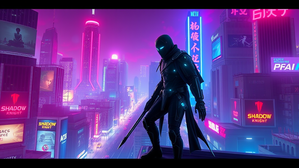 In the neon-drenched metropolis of Night City, a vigilante known as the Shadow Knight prowls the rooftops. Cloaked in high-tech stealth gear, he navigates through a world of towering skyscrapers and cybernetic criminals. Beneath the digital glow of towering billboards, he battles corrupt megacorps and rogue AI, relying on cutting-edge gadgets and unparalleled combat skills. Amidst flying cars and bustling streets, the city's pulse is electric with danger and opportunity, and the Shadow Knight stands as the last bastion of justice in a world teetering on the edge of chaos.