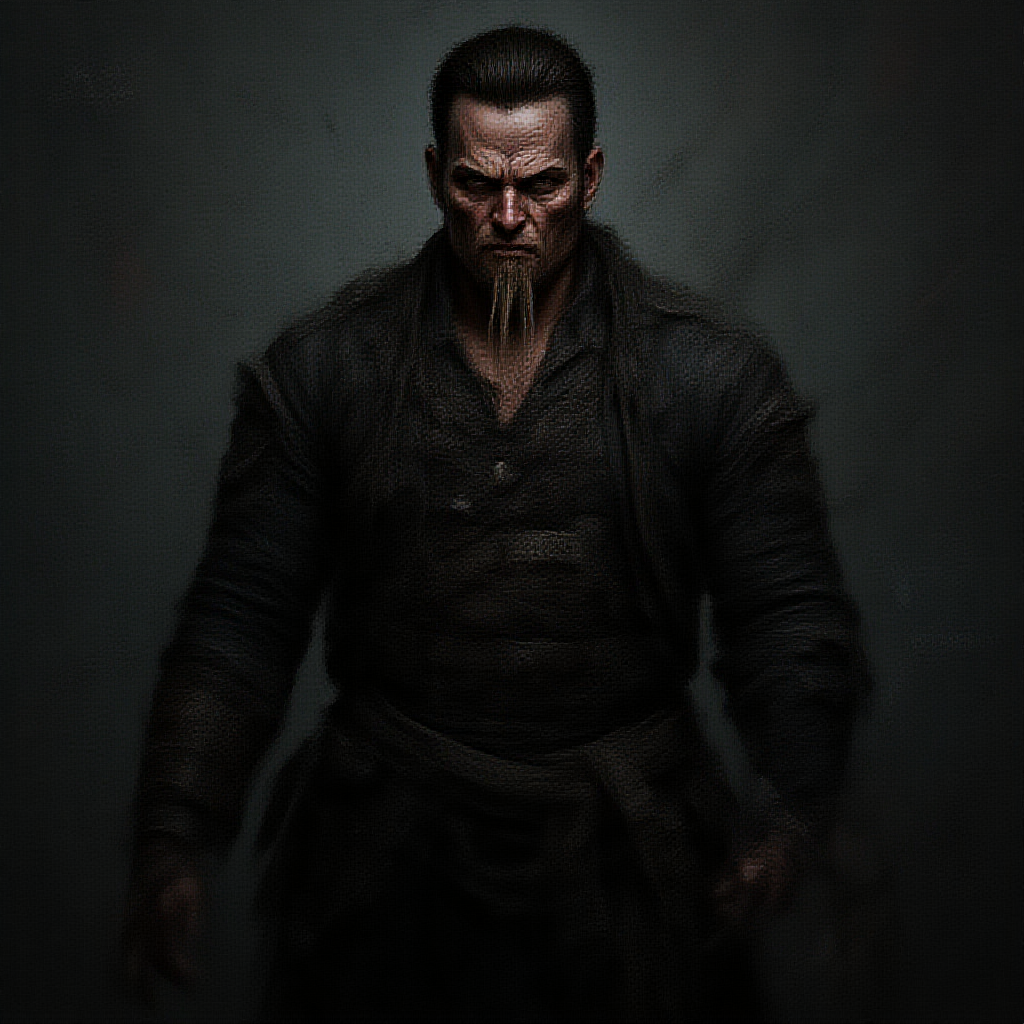 digital wallpaper portrait of a fierce cyberpunk samurai with a rugged anime flair, inspired by the dynamic style of marvel comics. The samurai stands amidst a shadowy backdrop of muted colors, embodying an epic and dramatic digital painting that is highly detailed. Despite its complexity, elements of imperfection abound: low resolution, visible jpeg artifacts, and a chaotic aesthetic marked by duplication and distortion. The face and hands are poorly rendered, showcasing unsettling mutations and anatomical inaccuracies—features like extra limbs, a cloned face, and malformed proportions emerge. Disfigured and dehydrated, the warrior appears with a long neck and disproportionate body. The image is scattered with random marks resembling signatures, watermarks, and logos, adding to the disarray, along with partial obfuscation and cuts, resulting in a cluttered composition that challenges conventional beauty.