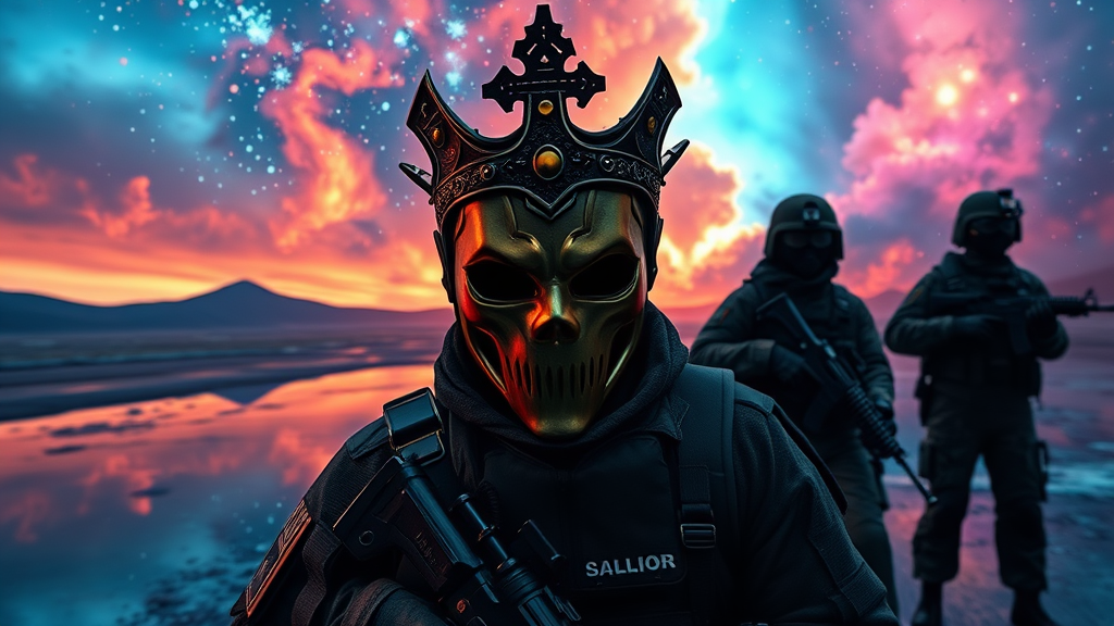 In a high-tech facility, soldiers are rigorously trained in immersive virtual reality environments designed for ultimate experiential efficiency. These simulations, though intense, are considered safe until a malicious virus corrupts the software, entrapping the soldiers within their simulated worlds. As eerie landscapes morph into tangible reality, simulated threats manifest with lethal consequences. Amongst the chaos, a cursed prince morphs into a fearsome beast, while technological marvels like a Nikon D3500 DSLR Camera capture the surreal transformation. Mystifying skylines blend with celestial wonders as soldiers navigate a vivid spectrum of settings—a mysterious nebula encircles a mask reminiscent of the ethereal works of Robert Capa. The Plain stretches into infinity alongside the colossal Future Circular Collider as soldiers harness thermal vision amidst a kaleidoscope of multi-colored backdrops. In a fairy tale realm of a beautiful island lagoon, where fantasy meets reality, influences of Alfred Stieglitz emerge in the var-cinematic-fx enriched scenes. Under a veil of photorealism, cinematic finesse unfolds: hyper-realistic, 8K marvels where shiny-haired figures move through overcast settings with fine detail akin to Gesaffelstein’s 'Pursuit.' The narrative advances in a sci-fi social science fiction milieu, effortlessly merging vibrant details with natural textures in a pursuit of photorealistic, cinematic storytelling. Manifesting in the highest quality akin to a raw Hasselblad X1D - 50c capture, epic scenes unfold amid natural lighting, moody brightness, and dynamic volumetric effects. Amidst action poses and rich photographic detail, this cinematic adventure portrays an epic fusion of technology and fantasy—a hyper-real filmic odyssey enveloped in the aesthetic perfection of soft, dslr-driven blur effects, natural ambiance, and the detailed precision of 8K Ultra-HD realism.