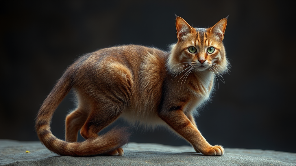 She is an extraordinary fusion of human and feline characteristics, a seamless blend of two worlds. Her upper body embodies the elegance and slenderness of a woman, while her lower half is cloaked in velvety fur reminiscent of a graceful cat. Her intelligent emerald green eyes, strikingly similar to those of a feline, sparkle with curiosity and mischief above a human-like face. Delicate, furry cat ears emerge from her lush, flowing hair, adding a playful touch to her appearance. A long, sinewy tail unfurls from her lower back, a living extension of her emotions, swaying and curling with every flicker of feeling. Her feet, nimble and padded, allow her to glide silently across any terrain, a true testament to her feline agility and human cunning.