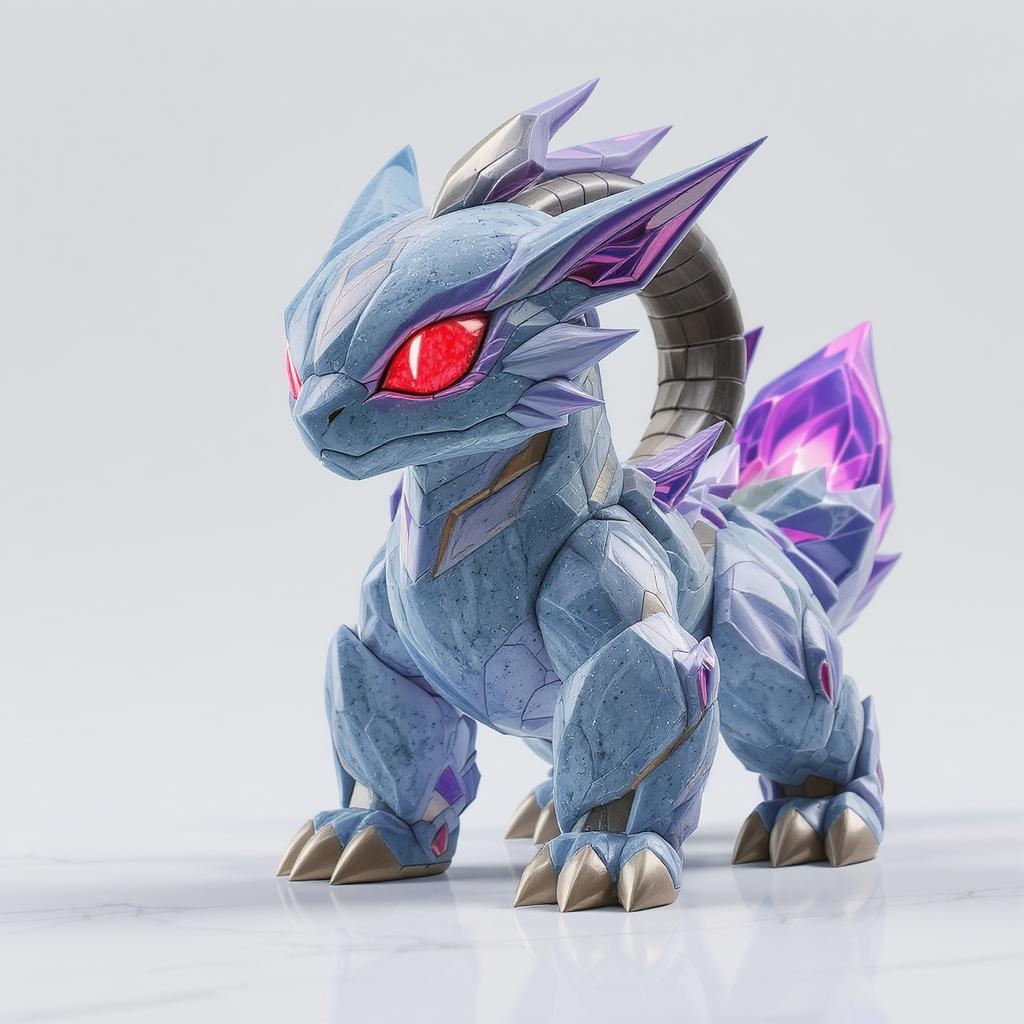 full_body, glowing_eyes, pokemon-inspired, ruby_red_eyes, simple_background, solo, white_background, chromatic_aberration, luxurious_marble, majestic_light_blue_granite, quadrupedal, futuristic_design, scifi, stylized_3d, vibrant_colors, polished, sleek, elegant, cohesive_design, balanced_anatomy, clear_visuals, well_defined, harmonious_composition, unique_expression, seamless_elements, dynamic_pose, expressive, engaging, captivating, imaginative.