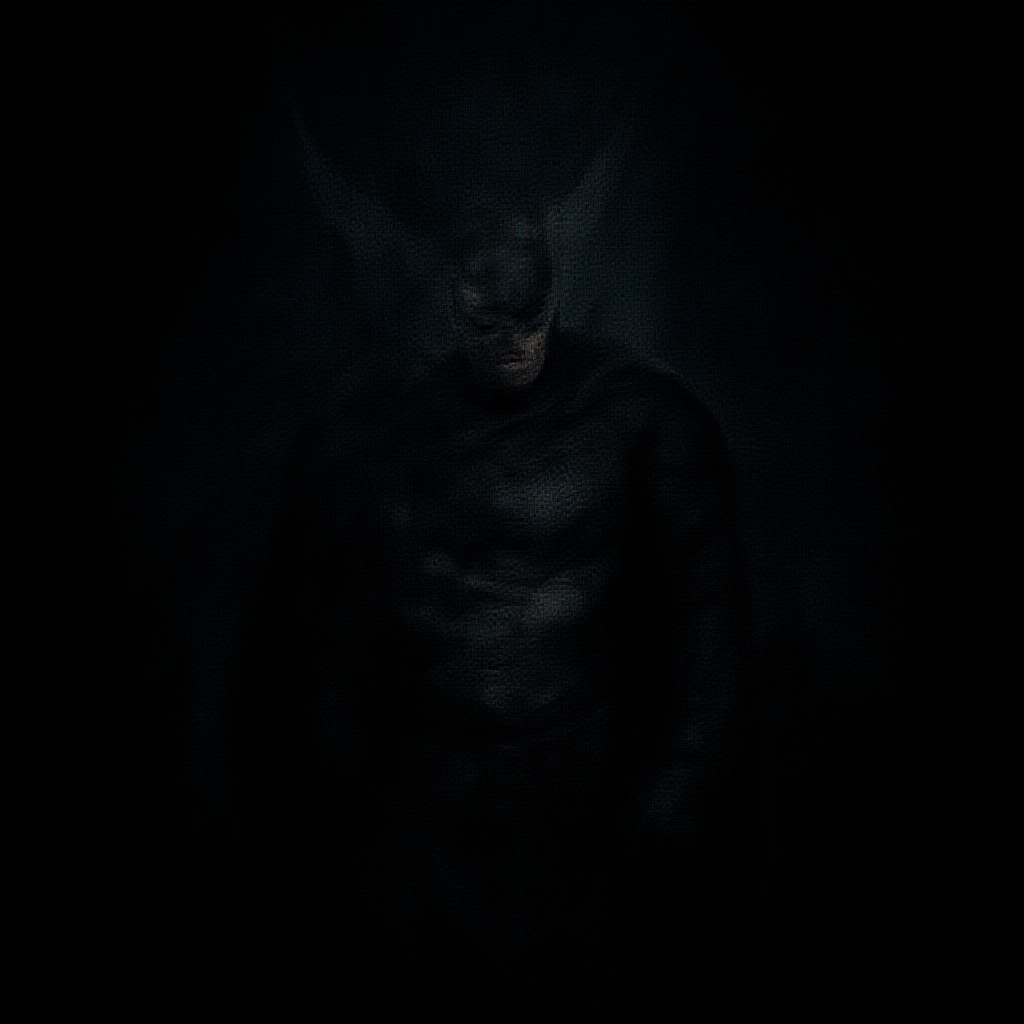 digital wallpaper portrait of batman, dark knight, comic book style, 8k, rugged, marvel-inspired, intense, dark backdrop, subdued palette, grand composition, dramatic, digital painting, emotionally charged, highly detailed, text, poor quality, distorted, jpeg artifacts, unattractive, repetitive, macabre, disfigured, poorly rendered hands, poorly rendered face, altered, unfocused, gaunt, flawed anatomy, skewed proportions, additional limbs, replicated face, misshapen, abnormal proportions, malformed limbs, absent arms, absent legs, surplus arms, surplus legs, elongated neck, photographic, name tag, insignia, watermark, logo, signature, trademark, partially visible, obscured, flawed bodywork, flawed facial features, flawed dental structure, anomalies.