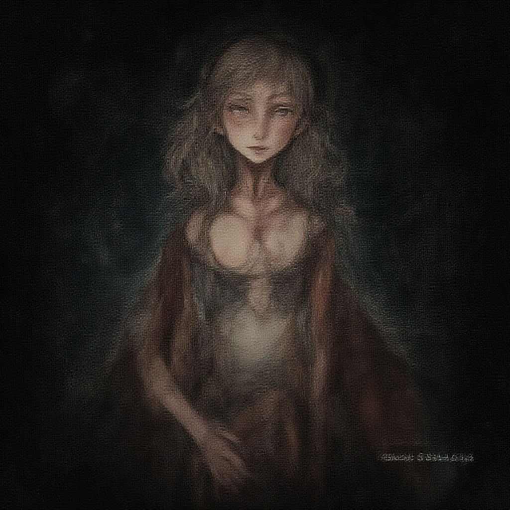 a digital painting of a conceited girl in a utopian setting, with an expressive and alluring face in an anime and comic-inspired style, featuring an 8k resolution with a rough, dark background and muted colors. The image is highly intricate yet displays intentional imperfections such as low quality, jpeg artifacts, and duplicated elements. It portrays a surreal and unsettling appearance with poorly drawn hands and face, showing mutations, deformations, and blurry features. The anatomy is deliberately flawed with disproportionate and malformed limbs, additional or missing arms and legs, a long neck, and distorted proportions. There are elements indicating photography-like effects such as a camera, signature, watermark, and logo. The overall composition is abstract, showing a playful disregard for conventional anatomy and proportions.