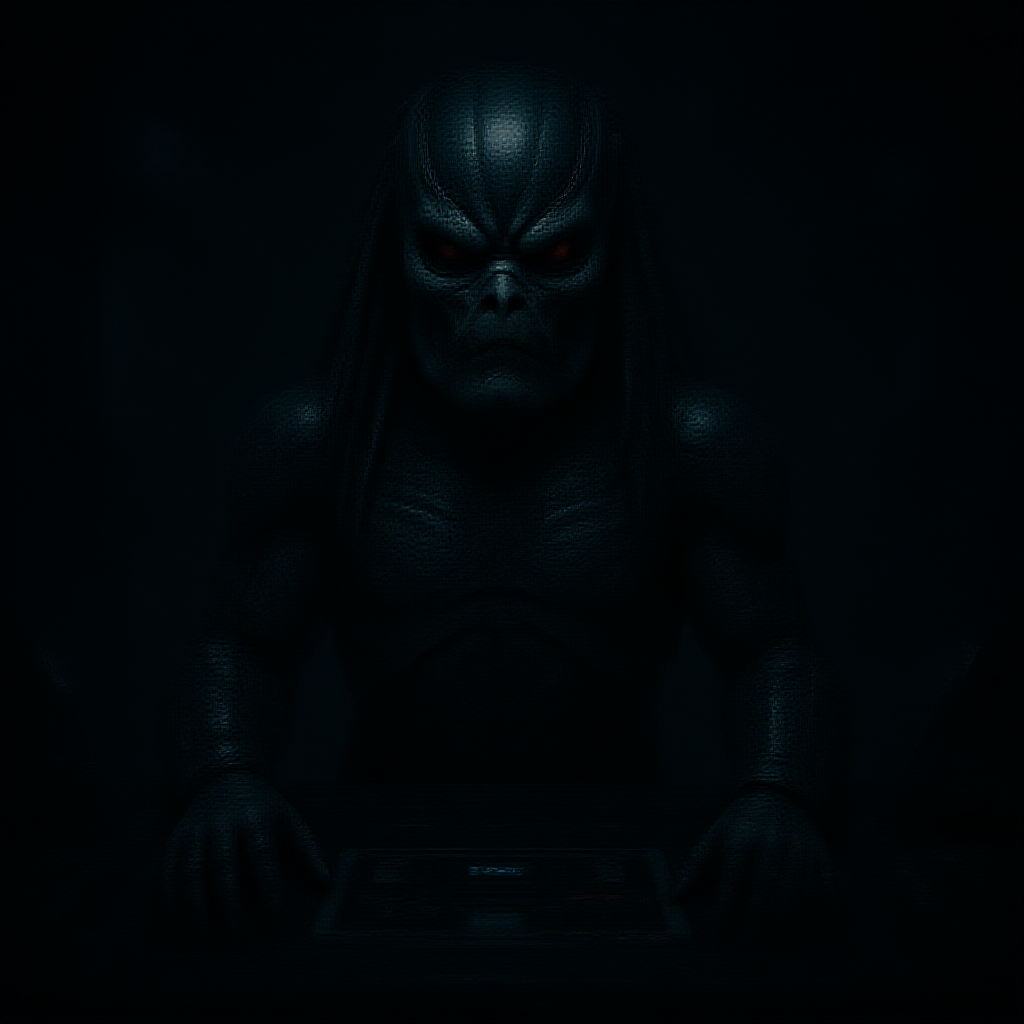 A hyper-realistic cinematic rendering of a Predator from the movie Alien vs. Predator, depicted as a futuristic hologram at a control panel. The scene is intricately detailed, with a high dynamic range and a focus on realistic textures and intricate details. The setting is a dimly lit spaceship, with surfaces that appear wet and reflective. Subtle, hidden details are scattered throughout the image, inviting closer scrutiny. The atmosphere is tense and immersive, embodying the essence of a dark sci-fi realm. The image is crisp and clear, avoiding any signs of blurriness, cropping issues, or digital artifacts. There are no visible signatures, watermarks, or text disruptions, maintaining the purity of the scene. Attention to detail is paramount, with the Predator’s features rendered with meticulous realism, capturing the essence of the iconic character in a novel, futuristic context.