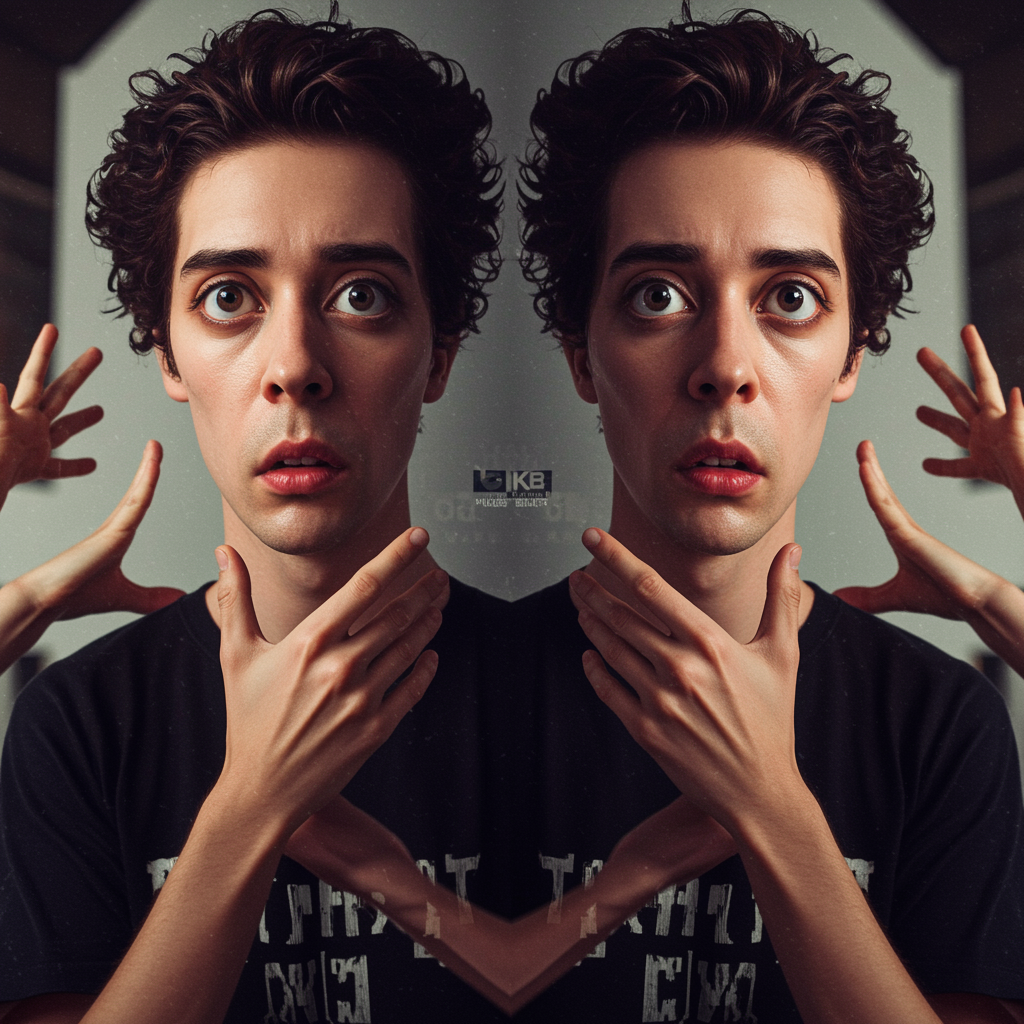 🤡🌎, 8k, UHD, HDR, surreal, abstract, distorted, duality, mirrored, chaotic, eccentric, mutation, bizarre expressions, elongated features, disproportionate anatomy, unconventional hands, peculiar arrangement, alternate realities, visual distortions, low resolution, out of focus, pixelated, noticeable compression artifacts, emblem, insignia, textual elements, partial view, animation-like style, fragmented visuals