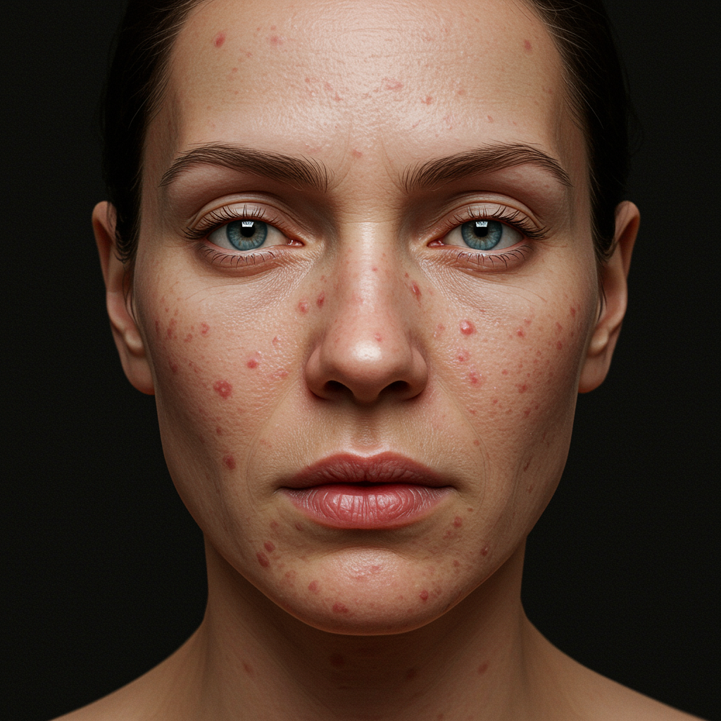 A stunning, ultra-high-resolution masterpiece depicting the raw beauty of human imperfection, this artwork blends detailed sketches and painting techniques to highlight skin spots, acne, and blemishes. The piece captures the authenticity of age, with subtle depictions of age spots and unique character in skin texture. Despite imperfections, the natural beauty shines through, creating a captivating contrast that celebrates individuality, embracing the narrative of real human experiences.