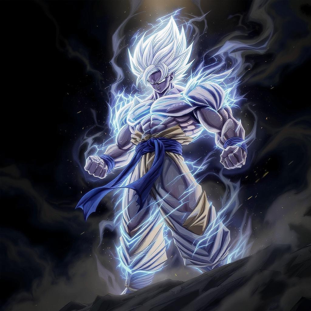 A stunning depiction of the ultimate anime dragon ball fighter, inspired by the style of Thiago Valdi, showcasing light black and silver tones with realistic lighting effects. The scene features a dynamic figure enveloped in light blue and silver accents, embodying the essence of a solarizing master. The character's physique is cut and ripped, exuding an aura of energetic frenzy, captured in a 9:16 aspect ratio with an artistic touch that enhances the intensity and power.
