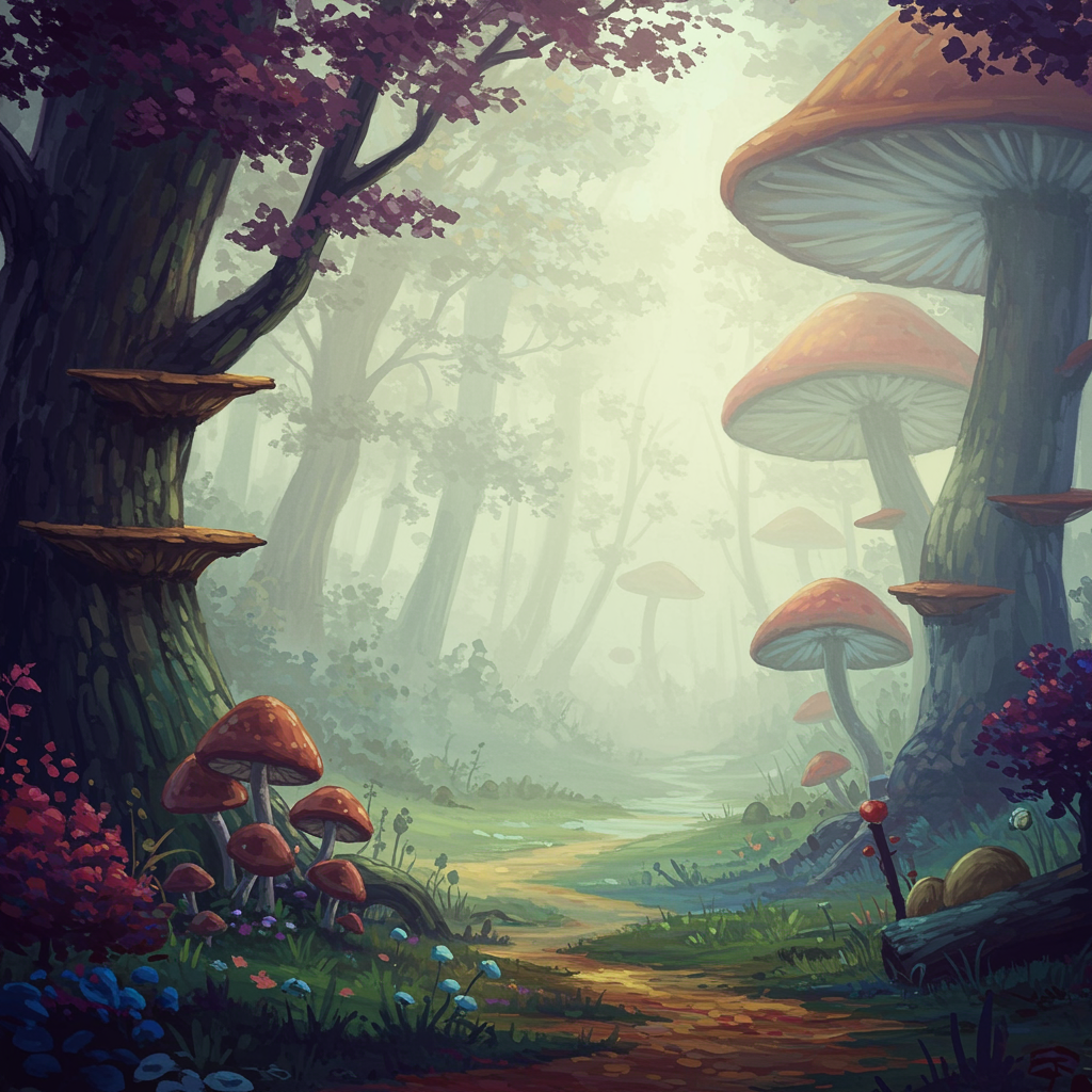 Whimsical Art, Stunning Fantasy Landscape, painting of an enchanted woodland, ethereal glow, bursting with vibrant hues, mushroom-like trees, soft illumination, intricately detailed, surreal visuals reminiscent of Unreal Engine 5, by a Vincent Van Gogh-inspired master, UHD, HDR, 16K, vivid and immersive, without digital artifacts or distractions, ensuring clarity and originality in every brushstroke.