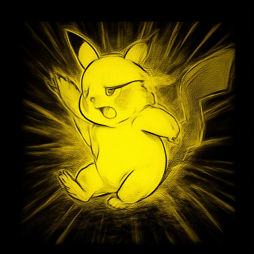 Pikachu, dynamic anime pose, sketch style, influenced by nvinkpunk with abstract brush strokes and bold lines, HDR Neo-Noir aesthetic, vibrant neon yellow, minimalist elements.