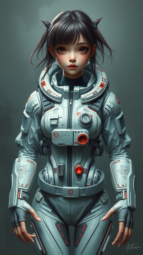 A hyper-realistic painting of a stunning girl in an EVA plugsuit, featuring intricate details and anime influences, reminiscent of Greg Rutkowski's style, popular on ArtStation. The creation has a CGI, 3D doll-like quality with an Octane render, characterized by intentionally flawed anatomy, including blurred and fuzzy elements. The figure possesses extra arms and fingers, with hands that are poorly drawn, conveying a sense of disfigurement. The image includes tiling effects, and displays a deformed, mutated aesthetic.