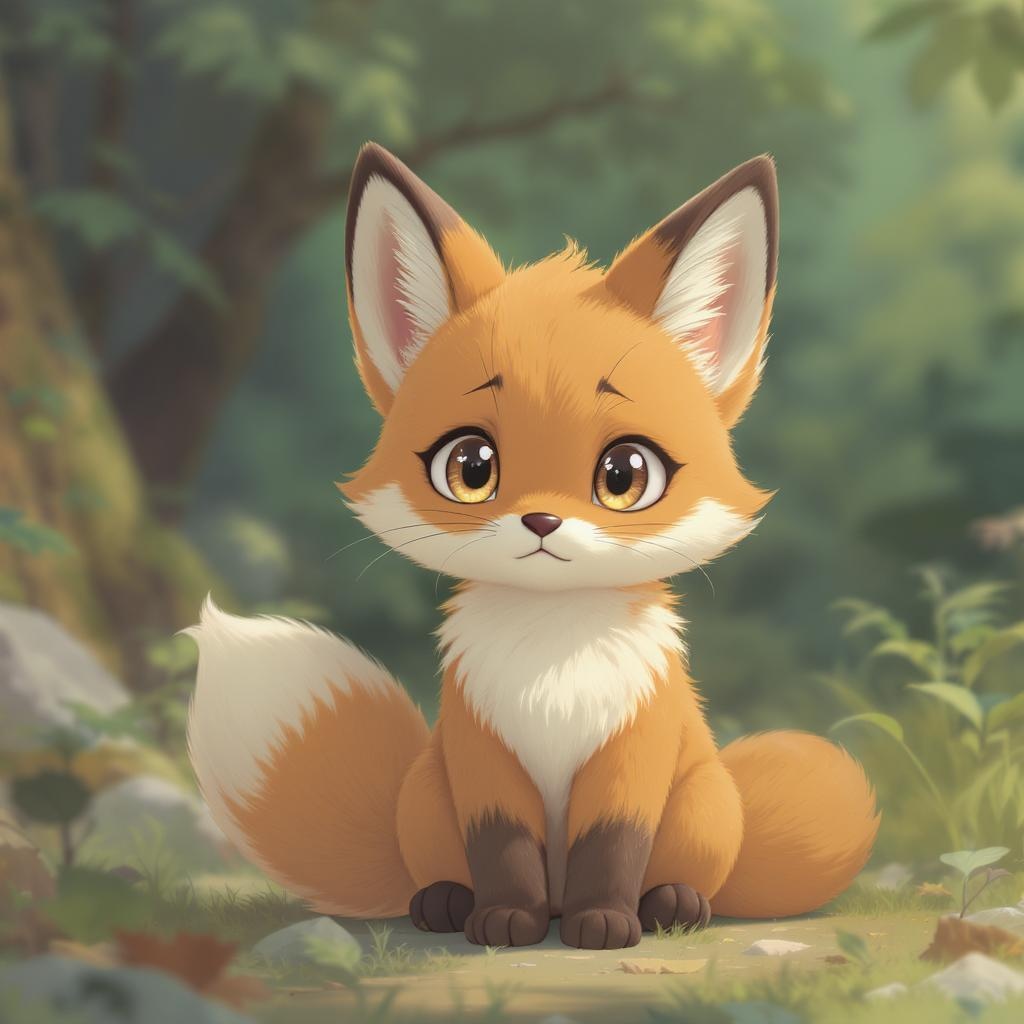 View this AI-generated image featuring an adorable anime inspired shy fox cub with a soft orange fluffy tail exuding a sense of caution and innocence crafted in the style reminiscent of production i g set against an earthy color palette the scene is rendered using 3ds max and v ray highlighting intr