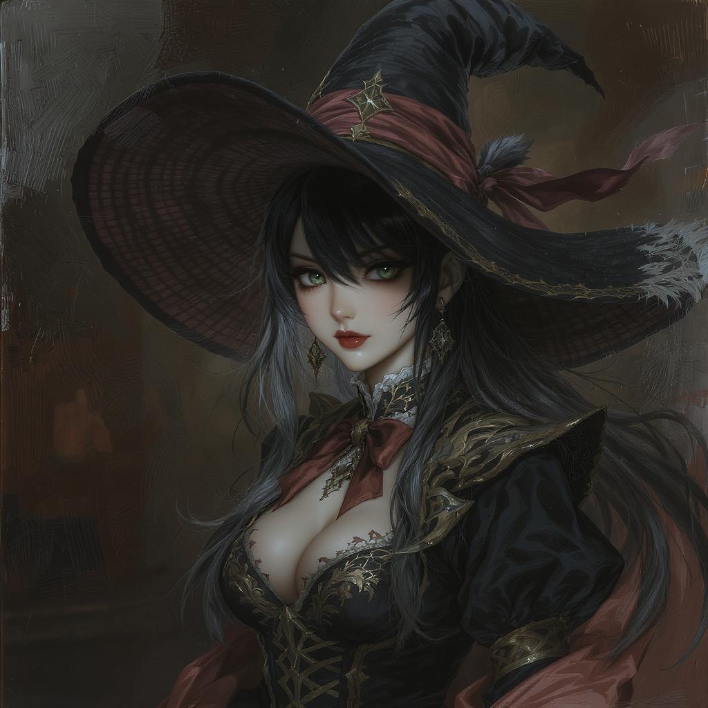 View this AI-generated image featuring rugged witch girl in an intricate magic school uniform adorned with a grand oversized wide brimmed hat cinematic elegance captured masterful illustration in digital painting style concept art embodying sophistication gaining momentum on platforms like artstatio