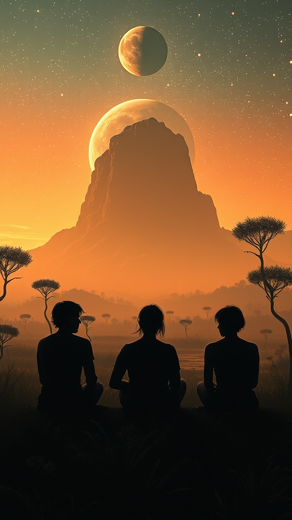 In a futuristic utopian society, individuals have cybernetic implants in their brains that filter negative thoughts and enhance positive ones with delightful stimuli. However, your group of renegade hackers has discovered a loophole to access the most troubling thoughts of those around you. Meanwhile, a band of adventurers embarks on a journey to a mystical land in search of a legendary flower rumored to possess extraordinary healing abilities. The scene is set with a Fujifilm X-T4 Mirrorless Camera capturing the enigmatic silhouettes of these travelers as they sit amidst a cosmic asteroid field, each wearing a distinctive pendant, reminiscent of Lee Friedlander's monochromatic style. The narrative unfolds across diverse backdrops—from the surreal microwave vision rendering of Cheyenne Mountain marshes to the vibrant hues of a beautiful jungle clearing, evoking magic realism in the spirit of Irving Penn. The story weaves through cinematic and dieselpunk sci-fi elements, crafted by Steven Cormann, with a photorealistic and hyper-realistic touch achieved by the Hasselblad X1D - 50c. The visuals are a symphony of natural and ambient lighting, cast in overcast skies with intricate details akin to 'Pursuit' by Gesaffelstein. The atmosphere is light yet electrifying, the action poses dynamic amidst an epic cinematic scene full of natural textures, volumetric lighting, and a ray-traced environment. The highest quality and detail render the narrative in vivid Ultra-HD, where the stunning realism meets imaginative sci-fi storytelling, all captured in RAW photo essence with soft, natural light.