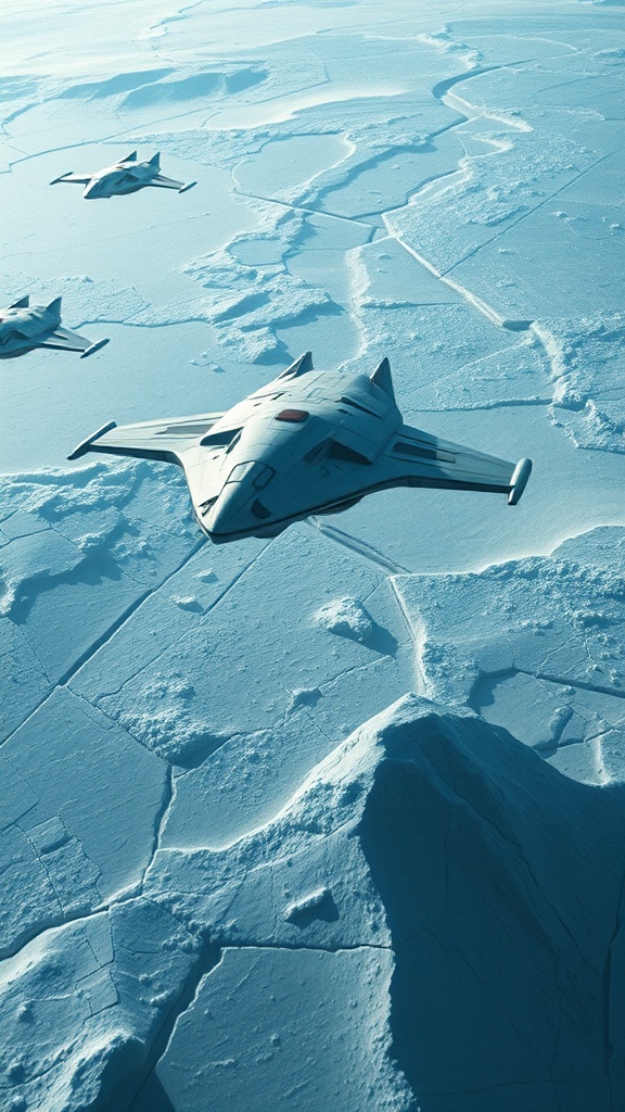 A stunning cinematic still of a spacecraft in motion, reminiscent of classic Star Wars scenes, captured with the timeless elegance of the Olympus AF-1 style. The composition features an intricate interplay of light gray and blue tones, exuding a sense of awe and wonder at its beauty. Fragmented planes of light gray and dark emerald merge seamlessly, echoing the aesthetic of a frosted, dystopian landscape. This hyper-realistic rendering, presented in 32k UHD, showcases a masterpiece of visual art. As the spaceship glides into view from a distance, its arrival evokes the excitement of #vfxfriday, capturing the essence of changelingcore and the grandiosity of IMAX. A close-up reveals the spacecraft in light indigo and white, illustrating hyper-realistic details that are nothing short of breathtaking. This digital artwork encapsulates the science fiction genre in a photo-realistic manner, emphasizing the otherworldly allure of space exploration, truly a masterpiece in every sense.