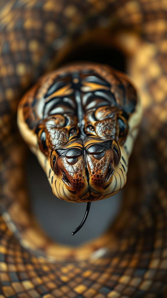 Coiled eastern diamondback rattlesnake poised to strike, piercing eyes, captured with DSLR in macro view, high depth of field, 22 megapixel clarity, realistic ray-traced shadows, natural ambient lighting, photorealistic and hyper detailed rendering, ultra closeup, captured with a 70mm lens, 3:2 aspect ratio, intense focus on texture and scales.