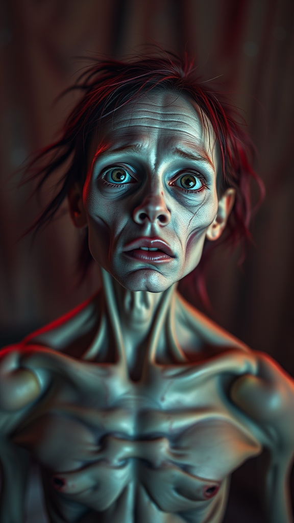 Colorful professional photo, hyperrealistic with cinematic lighting and photorealism, enhanced by ray tracing and depth of field, AD Magazine Photography style, imperfect anatomy with surreal and mutated features, floating and disconnected limbs, slightly distorted, intentionally ugly and unsettling, soft blur adding to the uncanny composition.
