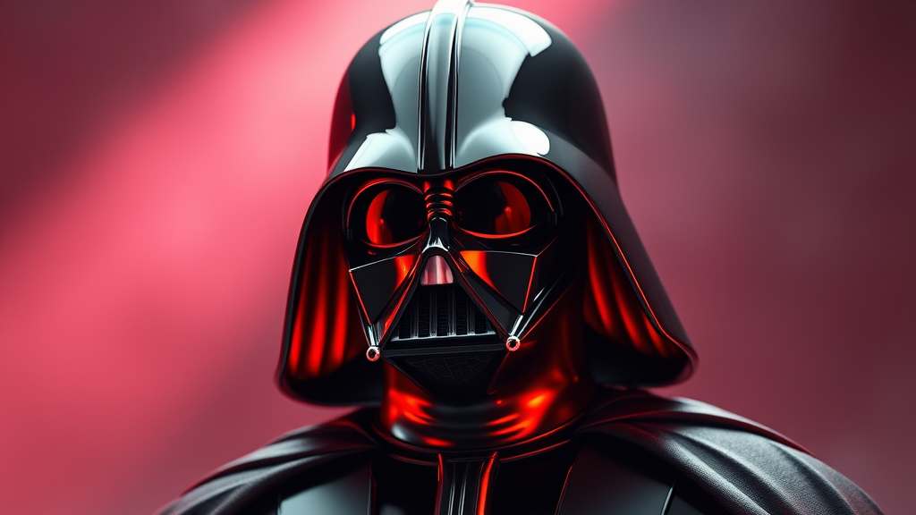 Complex 3D render ultra detailed depiction of a majestic Darth Vader, 150 mm, in a beautiful studio setup with soft lighting and striking rim light, showcasing vibrant and intricate details from the Star Wars universe. Hyperrealistic and anatomical elegance come alive against a stunning background, rendered with Octane in 8k for the ultimate quality and visual impact. This masterpiece illustration embodies extreme delicacy and astonishing detail in CG, suitable for unity as an 8k wallpaper, demonstrating absurdly intricate rendering. It's a breathtaking piece, akin to finely detailed official art, capturing the essence in an impressively absurd 8k CG unity wallpaper. The illustration bridges multiple styles, combining 3D elements with a sepia painting ambiance, nodding to cartoons and sketch work. It embodies a sense of analog photography, yet maintains digital craftsmanship – subtly incorporating creative nuances like analog signature and subtle duality, all while adhering to the iconic presence of Darth Vader in a brilliantly revitalized, stunning portrait.