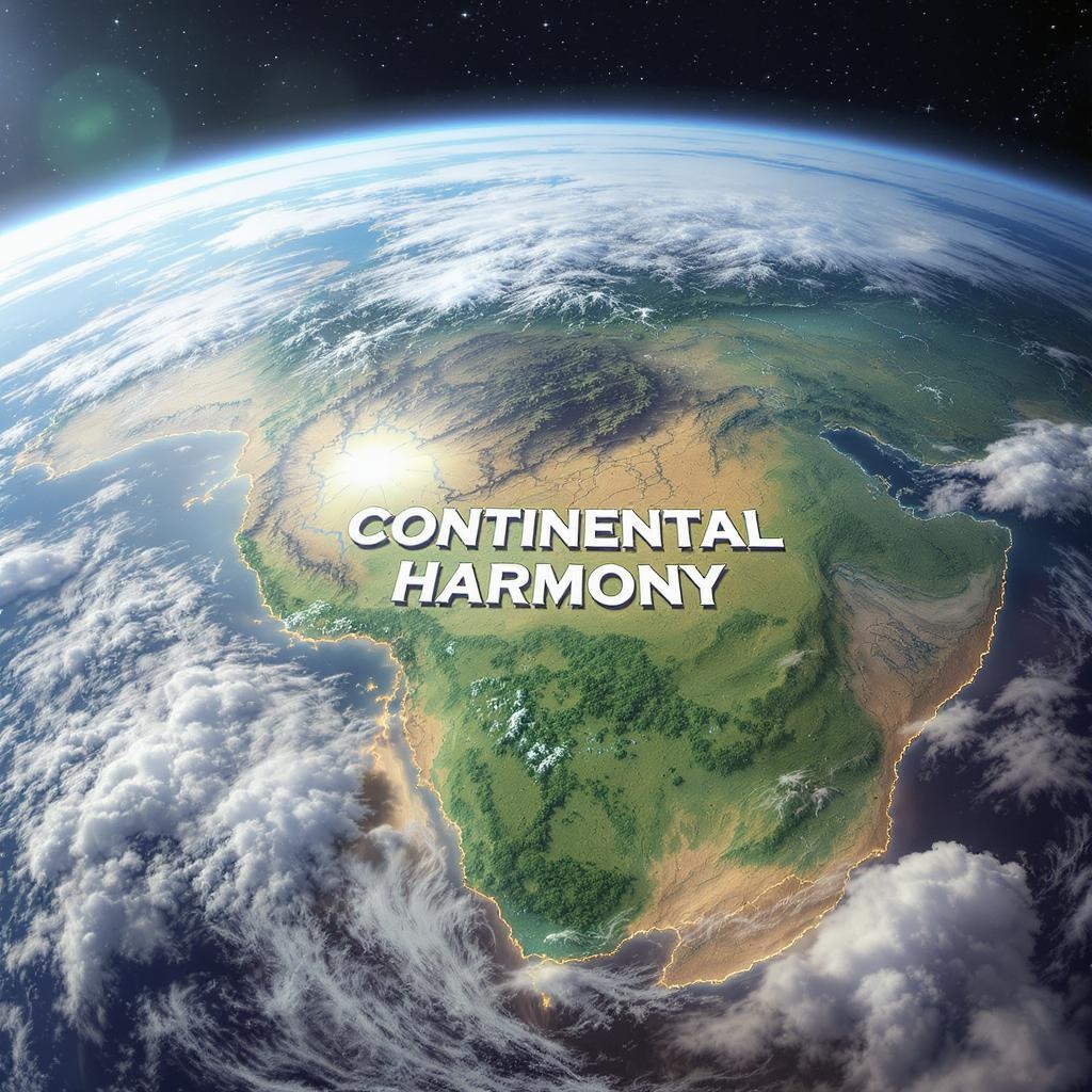 Continental Harmony: Picture a world where all the continents are conjoined in a singular, vast landmass, a colossal blend of ecosystems and cultures. This ancient supercontinent, unified yet diverse, sprawls majestically, where verdant forests seamlessly merge with arid deserts and towering mountains cradle sprawling valleys. The rhythm of life is interconnected; creatures from distant lands mingle freely, while human civilizations rise and fall, their narratives entwined in this harmonious expanse. This is a realm where boundaries dissolve, and the tapestry of life is woven intricately across one boundless canvas, a testament to the unity and diversity of our planet’s potential.