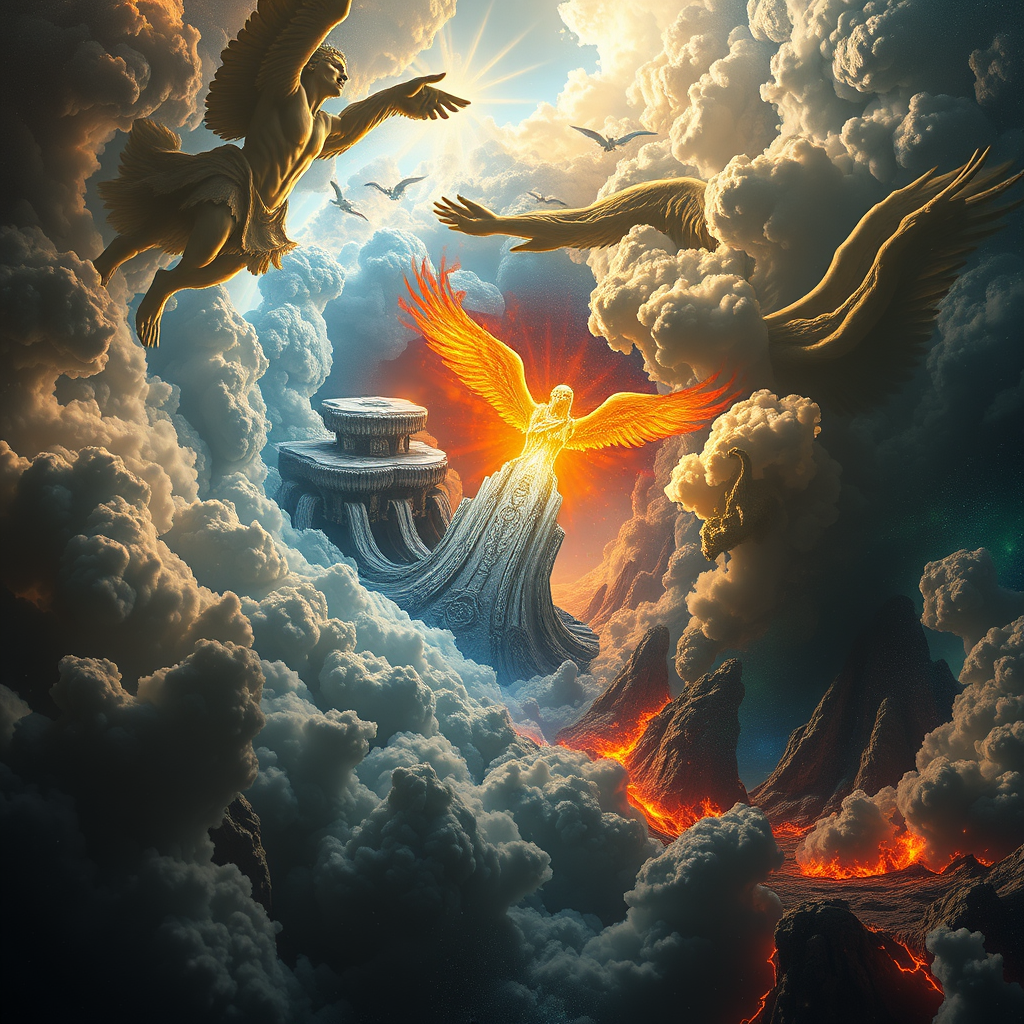 Cosmic dual realms: a universe nested within another::5 hyper-realistic fantasy landscapes, captured from the vastness of space, exquisitely detailed::3 celestial realms clashing::2 surreal visions of heaven and inferno in an eternal dance.