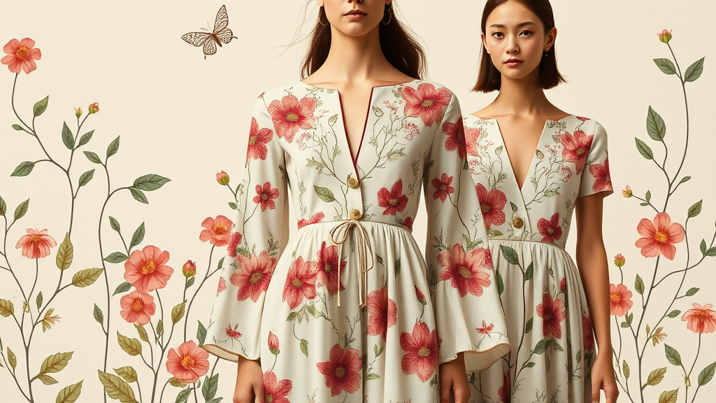 Create a fashion collection that embodies the refined grace of botanical motifs, featuring garments adorned with intricate floral patterns and rich organic textures. This line incorporates a natural color palette, drawing from earthy tones and vibrant floral hues to evoke the essence of nature in a manner that is both sophisticated and wearable. Silhouettes elegantly mimic the soft curves and gentle drapes of petals, while sustainable fabrics like linen and silk reflect the purity of the natural world. Unique embellishments such as leaf-shaped embroidery and vine-like details intertwine throughout the designs, creating a harmonious connection between fashion and flora, resulting in pieces that celebrate the serene beauty of the natural ecosystem.