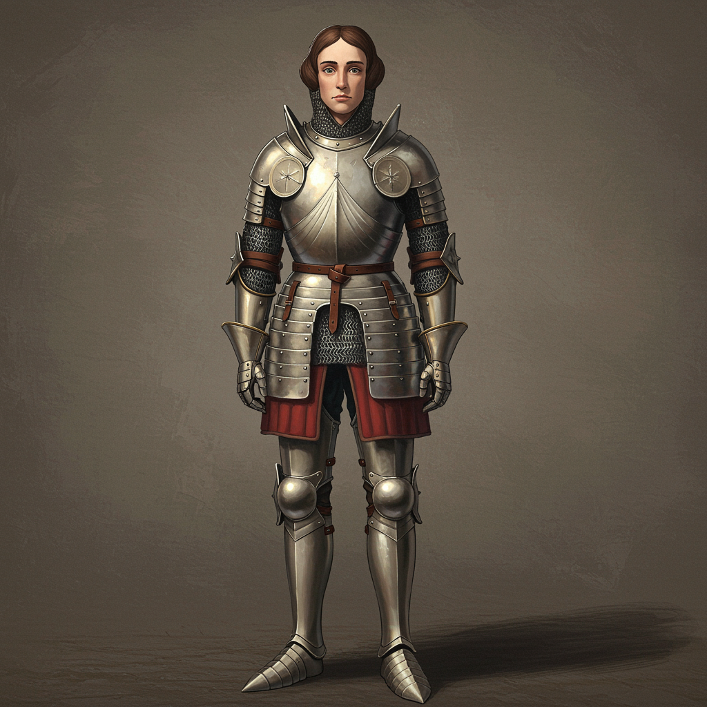 Create a full-body image of a strikingly beautiful artwork portraying a figure in medieval armor. This professional oil painting is inspired by masters like Ed Blinkey, Atey Ghailan, Jeremy Mann, Greg Manchess, and Antonio Moro, and leans into the style of Studio Ghibli. The artwork is intricate and highly detailed, boasting sharp focus and a dramatic, photorealistic finish. It gains inspiration from trending pieces on ArtStation and CGSociety, showcasing an array of intriguing, albeit unconventional colors. While maintaining a cartoonish 3D appeal, ensure there are no visual anomalies like cloned faces or extra limbs. Emphasize correct anatomy and eliminate any distortions such as crossed eyes or poor proportions, ensuring hands, feet, and facial features are accurate and aesthetically pleasing. The piece blends the uniqueness of Greg Rutkowski's style with the imaginative touch of Midjourney, excluding any blurriness or deformities that might distract from the overall composition.