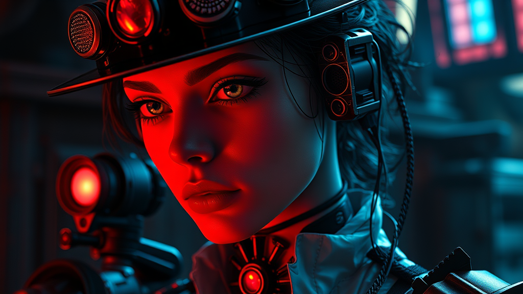 Create a professional photo with high detail and cinematic quality, set in a Victorian Cyberpunk universe. Incorporate 8k resolution, UHD, and HDR attributes with an anime and manga style influence. The artwork should be digitally crafted with glow effects, appear hand-drawn, and rendered using tools like Cinema 4D, Octane Render, or Blender. The scene should be dark, atmospheric, and ultra-detailed with a 4k ultra-realistic appearance. Aim for a sharp focus, hyperrealistic and vibrant modelshoot style, showcasing a masterpiece with vivid colors. Take inspiration from renowned artists such as Ed Blinkey, Atey Ghailan, Studio Ghibli, Jeremy Mann, Greg Manchess, and Antonio Moro. Ensure the art is intricate with high detail and sharp focus, emphasizing a dramatic yet photorealistic style, popular on platforms like ArtStation and CGSociety. Maintain the charm of concept art, rendered to perfection, while avoiding disfigured or poorly drawn features, ensuring the anatomy is flawless and aesthetically pleasing with stunning detail throughout.